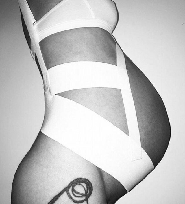 FOTO & VIDEO / Şi-a pozat iubita gravidă în 9 luni, în lenjerie intimă! Mai are puţin şi naşte gemeni, dar nu se fereşte să arate semne obscene