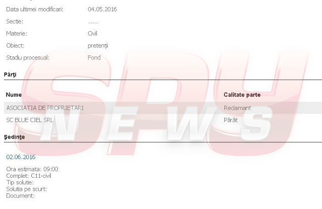 "Totul a început de la nişte lucrări pe care le-am făcut la mine în apartament, în condiţiile în care administraţia susţinea că există o problemă cu ţevile. Le-am făcut: ţevi, cadă, tot. Am întors casa cu fundul în sus. Până la urmă s-a demonstrat că nu era de la mine. Era coloana principală. M-am dus cu facturile şi nu le-au mai recunoscut. În schimb trebuie să plătesc ă groază de bani la întreţinere şi vreau să ştiu pentru ce", ne mărturisea Toader, la începutul procesului. Nu este pentru prima oară când omul de afaceri se judecă cu vecinii. Prima dată, cererea - înscrisă la Judecătoria Sectorului 5 - a fost anulată. Apartamentul despre care vorbeşte Marcel Toader este cel în care a locuit, mai mulţi ani, alături de Gabriela Cristea