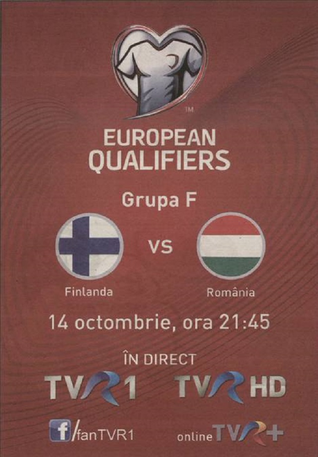 Meciul Finlanda-România, din grupa F de calificare la Euro 2016, va avea loc mâine seară şi va fi transmis în direct de TVR. Televiziunea publică a vurt să facă reclamă transmisiunii, însă a dat-o-n bară. "Grupa F, Finlanda versus România", scrie în anunţul publicitar, denumirea celor două ţări fiind însoţită şi de drapelul ei. Neaşteptat, în loc de steagul României, TVR a pus, din greşeală, steagul Ungariei (roşu, alb, verde). De cealaltă parte, simbolul drapelului Finladei este corect. Reclama greşită apare, în toată "splendoarea", pe un sfert dintr-o pagină a unui ziar românesc.
