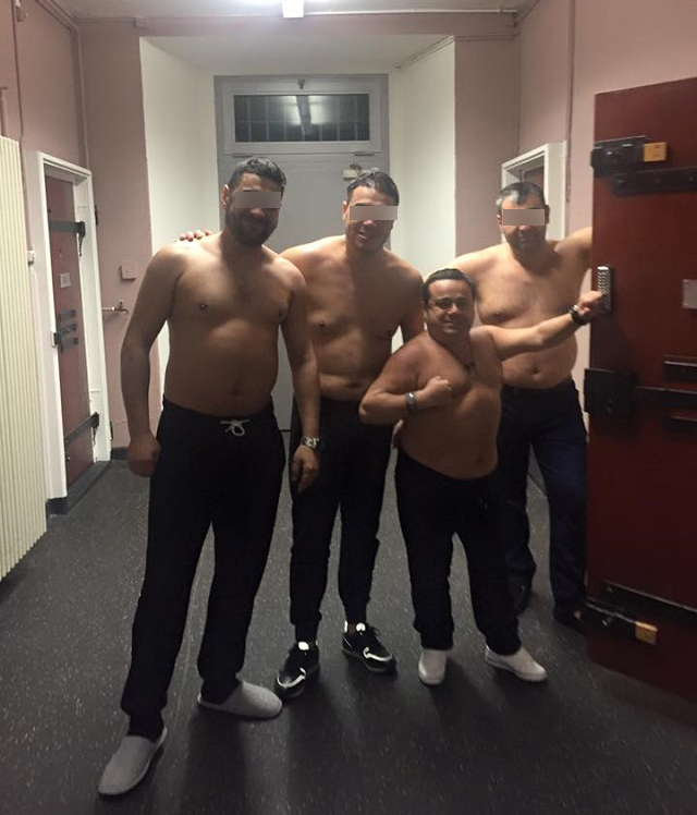 În fotografia publicată pe Internet, Adrian Minune apare, împreună cu alţi trei bărbaţi, toţi patru fiind dezbrăcaţi la bustul gol, pe un hol identic cu cel al unui penitenciar. La rândul lor, uşile camerelor arată exact ca cele de la închisoare, se deschid spre exterior şi au acelaşi sistem de închidere!