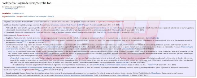 Imediat după nefericitul accident, o persoană emoţionată de drama Aurei Ion a făcut o pagină oficială pe Wikipedia, aşa cum doar cele mai mari personalităţi ale lumii au. În 26 ianuarie ştergerea a fost propusă, iar la mai puţin de o lună administratorii enciclopediei online au decis că pagina va fi ştearsă.