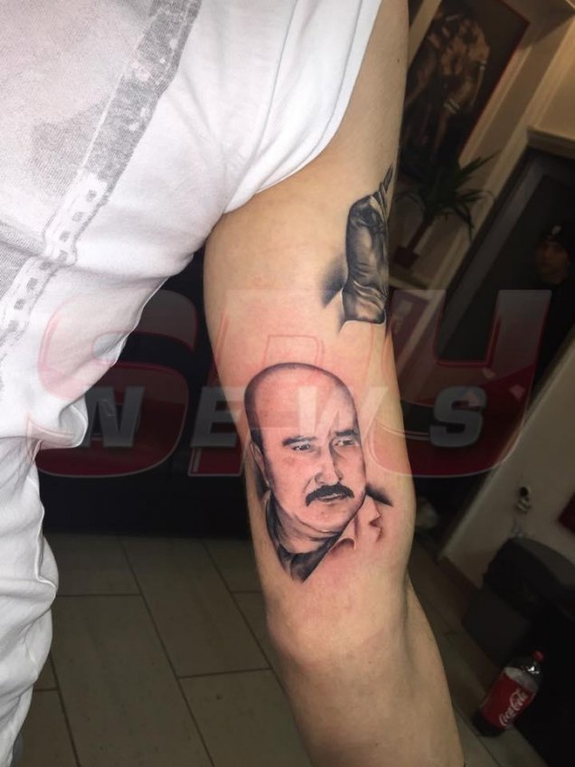 Dar şi mezinul lui Nuţu Cămătaru, care în urmă cu puţin timp şi-a tatuat pe braţul stâng figurile celor mai cunoscuţi mafioţi: Don Corleone, Al Capone, Tony Montana şi bineînţeles chipul tatălui său, Nuţu Balint (foto jos).