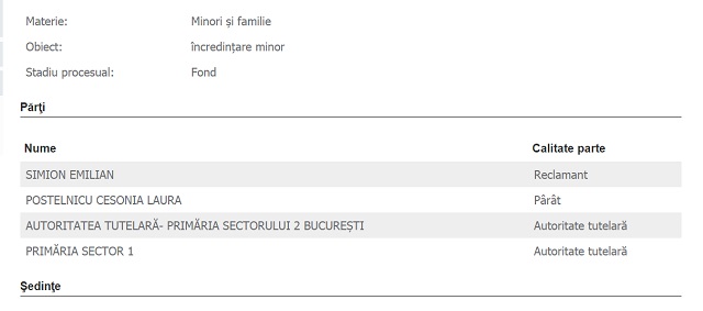 "Stabileşte locuinţa minorului la tată; părţile vor hotărî împreună, cu consultarea minorului, asupra tuturor aspectelor privind educaţia şcolară a minorului (unitatea şcolară, profilul, clasa etc.), educaţia extraşcolară a minorului (învăţarea unor limbi străine, meditaţii, activităţi sportive etc.), participarea minorului la excursii şi tabere în care nu este însoţit de părinţi. (...) Încuviinţează exercitarea dreptului pârâtei de a avea legături personale cu minorul, la domiciliul său, după următorul program: în prima şi a treia săptămână a fiecărei luni de vineri orele 18,00, până duminică, orele 20,00; în prima jumătate a fiecărei vacanţe şcolare a minorului; reclamantul îşi va executa în natură obligaţia de întreţinere faţă de minor. Obligă pe pârâtă la plata în favoarea minorului a sumei lunare de 380 de lei, cu titlu de pensie de întreţinere (ulterior suma a fost majorată, la aproximativ 800 de lei - n.r.)", se arată în sentinţa magistraţilor.