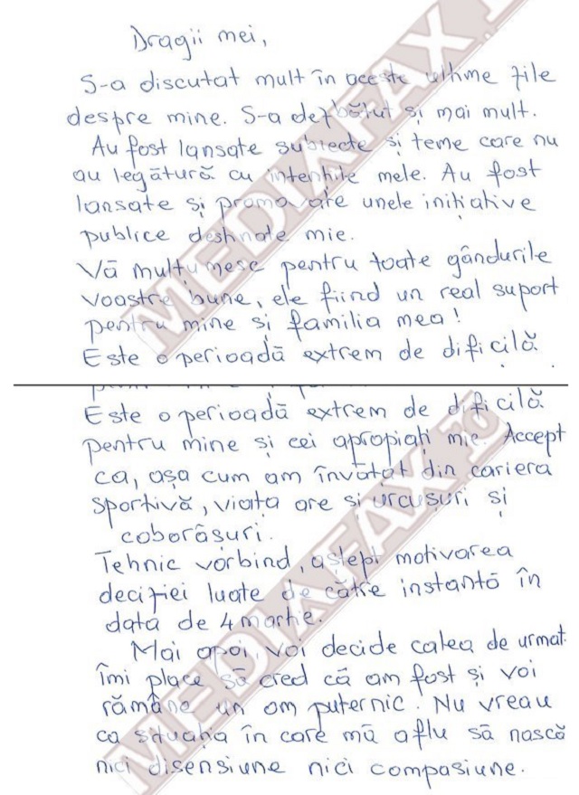 Este o perioadă extrem de dificilă pentru mine şi cei apropiaţi mie. Accept că, aşa cum am învăţat din cariera sportivă, viaţa are şi urcuşuri şi coborâşuri.