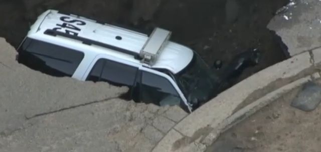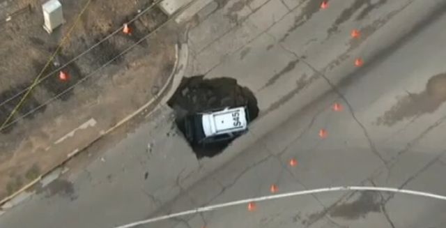 Întâmplarea a avut loc în Colorado, iar poliţistul, din fericire, este înafara oricărui pericol. Poliţistul a povestit cum se afla la volanul maşinii, iar dintr-o dată s-a trezit într-o gaură de câţiva metri. Acesta spune că nu a văzut-o şi nu ştia de existenţa ei.