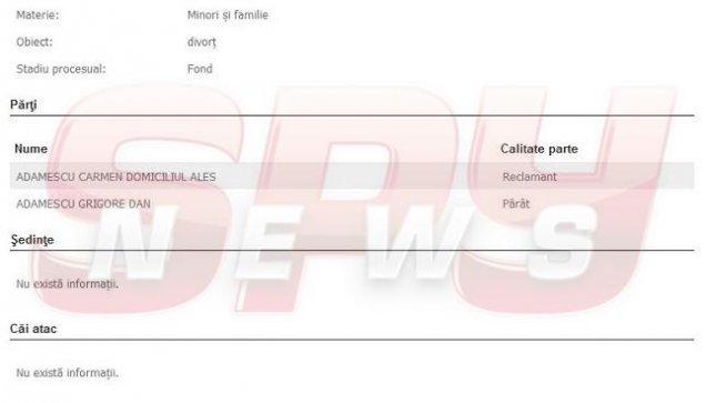 Acţiunea în care Carmen Adamescu cere divorţul de omul de afaceri Dan Grigore Adamescu a fost înregistrată pe 20 iulie. Magistraţii nu au stabilit încă primul termen al procesului. Adamescu - considerat unul dintre cei mai bogați oameni de afaceri din România - deţine, printre altele, o companie de asigurari și un shopping center în centrul Bucureștiului.