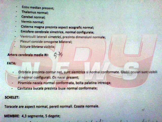 Coşmarul abia începea pentru cei doi părinţi. Lucrurile pe care le aflau treptat au reuşit să o îngenuncheze pe Roxana. "În urmă cu o săptămână am reuşit să îl văd. Nu pot descrie în cuvinte cum arată. Capul este asimetric, nu are o nară, nu are ochiul stâng, vasele inimii sunt încâlcite şi îi lipseşte o valvă de la inimioară. Medicii nu îi mai dau şanse şi mi-au spus că acest caz este unic în România. Vreau ca cei vinovaţi să plătească. Mi se pare ireal ca după toate analizele pe care le-am plătit cu bani grei să nu mi se spună din timp că o să aduc pe lume un băieţel cu astfel de malformaţii. Nu pot să îmi mai revin din şoc şi vreau dreptate. Nu ştiu cât timp mă mai pot bucura de băiatul meu care are acum aproape o lună", a adăugat tânăra.