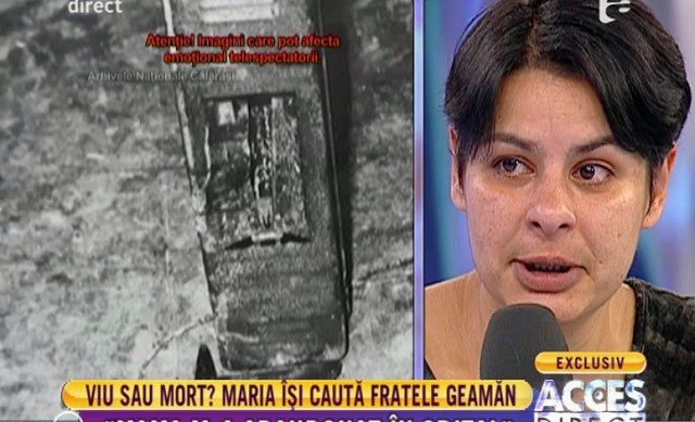 ”Într-adevăr, tu și fratele tău ați fost născuți în 1982. Din păcate, fratele tău nu a mai rezistat și s-a stins din viață în 1985, la trei luni după ce a fost mutat în alt spital, pentru că era bolnav”, i-a spus reporterul emisiunii.