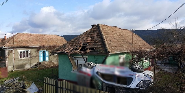 În localitatea Fundătura (nume predestinat), aflându-se într-o curbă, şoferul a pierdut controlul volanului, a intrat pe contrasens şi s-a izbit de un parapet, a distrus un podet şi a "zburat" printr-un gard în acoperişul unei locuinţe.