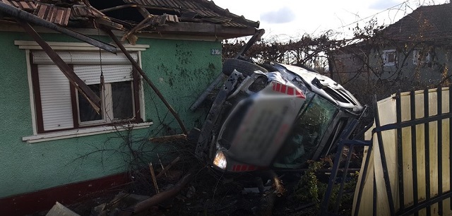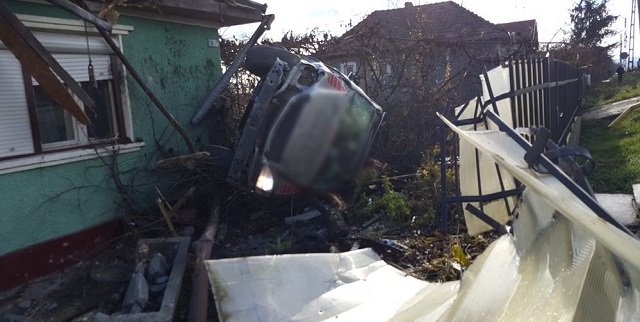 Bărbatul a scăpat ca prin minune cu viaţă, dar maşina a fost distrusă aproape în întregime. Gardul casei, o parte din acoperiş şi zidul casei respective sunt şi ele distruse.