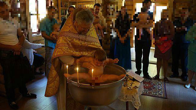 O fetiţă a stârnit amuzamentul tuturor după ce o imagine de la botezul ei a devenit virală pe internet. În imagine, micuţa este surprinsă chiar înainte de a fi scufundată de preot în cazanul cu apă pentru a fi botezată. Micuţa nu a agreat foarte tare ce avea să-i facă preotul aşa că a făcut tot posibilul să nu ajungă în apă, agăţându-se cu picioarele de marginile cazanului.