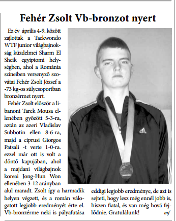 Sportiv al secţiei de Taekwondo WTF din cadrul CSA Steaua Bucuresti, Zsolt se afla în faţa celei mai mari provocări şi în acelaşi timp performanţe din istoria taekwondo-ului românesc. Şansa obţinerii unei medalii la ediţia a doua a Jocurilor Olimpice de Tineret ce se desfăşoară anul acesta la Nanjing în China. A fost atras de acest sport încă din anul 2005, la Clubul Sportiv Lacul Ursu, Sovata, unde a reuşit să câştige primul tilu la Campionatul Naţional de Copii, la categoria Copii 1, în anul 2007. Un an mai târziu, trecând la categoria Cadeţi, reuşeşte aceeaşi performanţă, stabilind pentru prima dată premizele unei cariere de succes în acest sport.