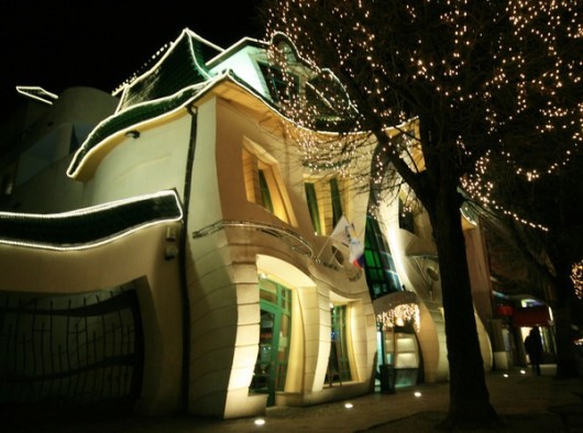 2. The Crooked House (Sopot, Polania)- Clădirea a fost proiectată în anul 2002 şi construită în anul următor, între ianuarie şi decembrie 2003. Arhitectura casei a fost inspirată din desenele lui Jan Marcin Szancer (celebru artist polonez şi ilustrator de cărţi pentru copii) şi ale lui Per Dahlberg (pictor suedez care locuieşte în Sopot).