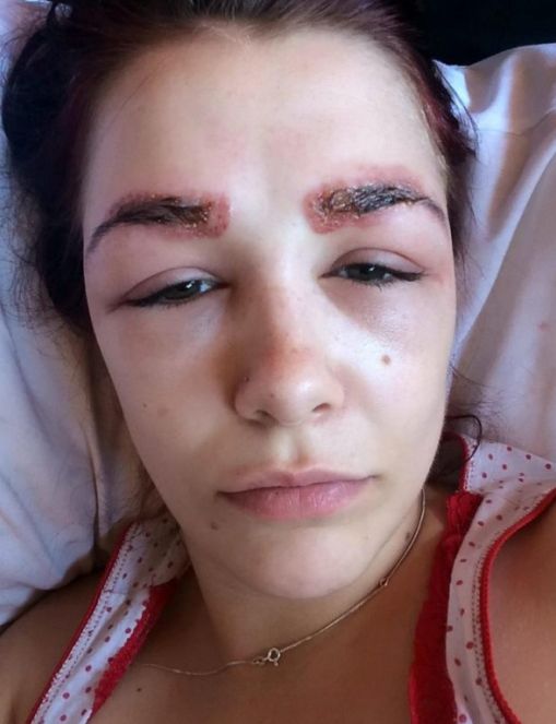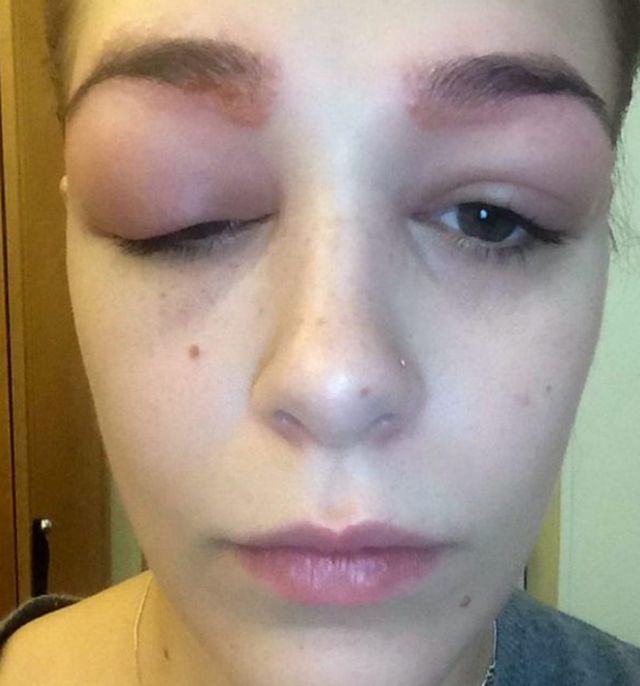 A două zi, tânăra abia şi-a putut deschide ochii din cauza unei alergii severe la colorant. Pielea ei a început să se îngălbenească şi să se cojească.