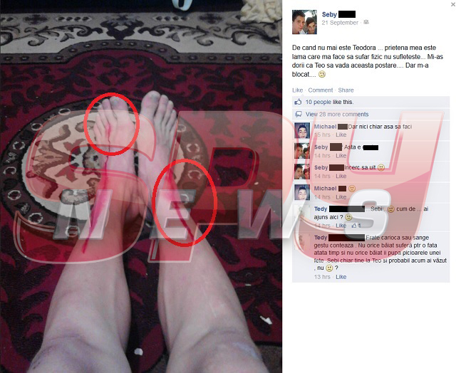 Mesajul şocant care însoţea fotografia postată de Sebi a reuşit să atragă atenţia prietenilor virtuali, însă nu şi pe cea a Teodorei, care nu mai vrea să audă de "Romeo".