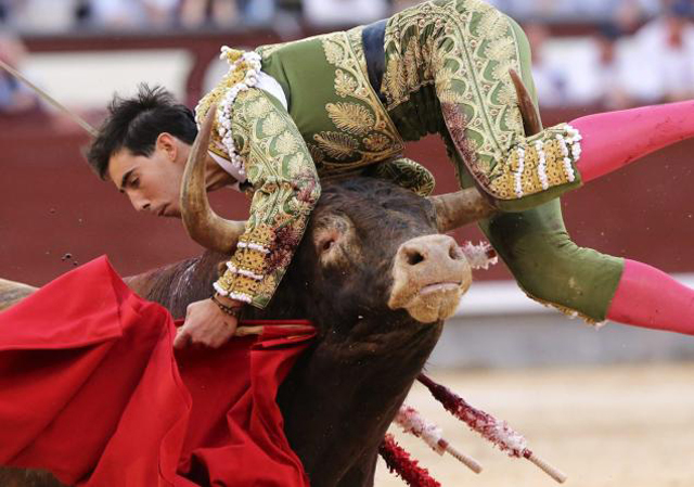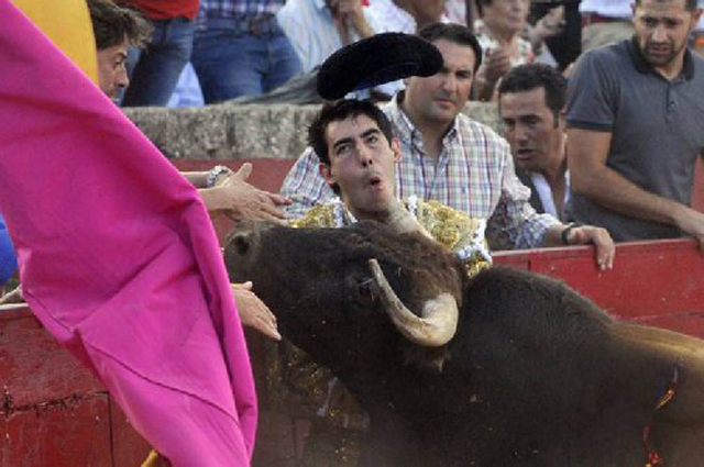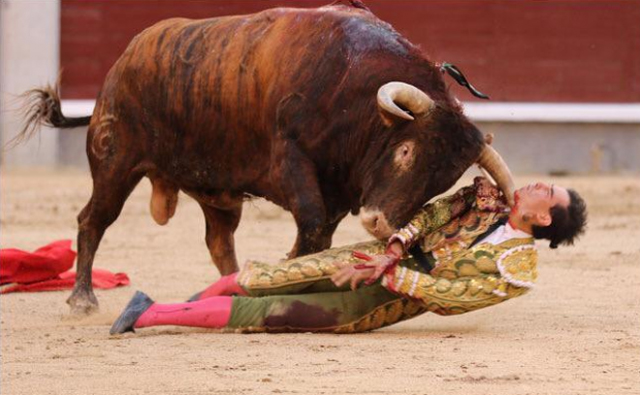 Toreadorul s-a recuperat și a revenit în arenă în urmă cu câteva zile, la un spectacol cu tauri în Salamanca, unde a avut parte de aceeasi soartă: taurul l-a agățat ca într-un cuier. Și tot de gât!