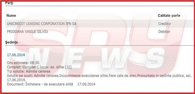 Magistraţii Judecătoriei Sectorului 3 au încuviinţat executarea silită a omului de afaceri Silviu Prigoană la cererea unei firme de leasing. Dosarul a fost depus pe data de 4 iunie, iar judecătorii au luat în discuţie pe 17 iunie, când au şi stabilit executarea silită a acestuia, fără vreo cale de atac.