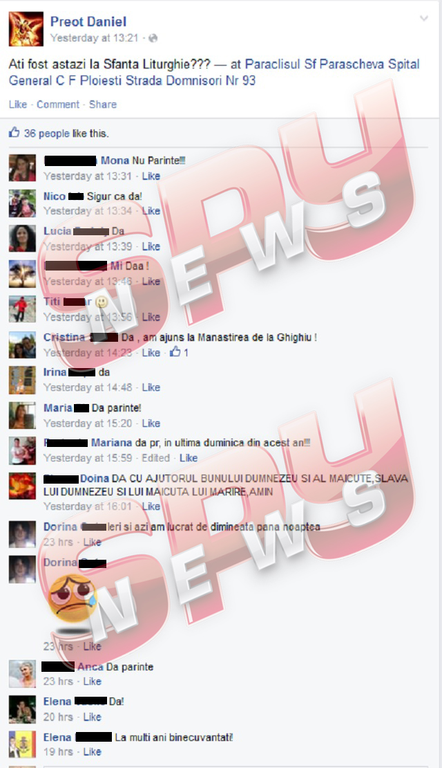 Mare e grădina Domnului şi mulţi îi sar gardul! Un preot din Ploieşti a creat o pagină de Facebook pentru lăcaşul de cult în care slujeşte şi a "atacat" enoriaşii din spaţiul virtual: "Aţi fost astăzi la Sfânta Liturghie?", a întrebat părintele Daniel, menţionând locul în care se afla în momentul în care a fost postat mesajul - "Paraclisul Sf. Parascheva Spital General CF Ploieşti Strada Domnişoru Nr. 93".