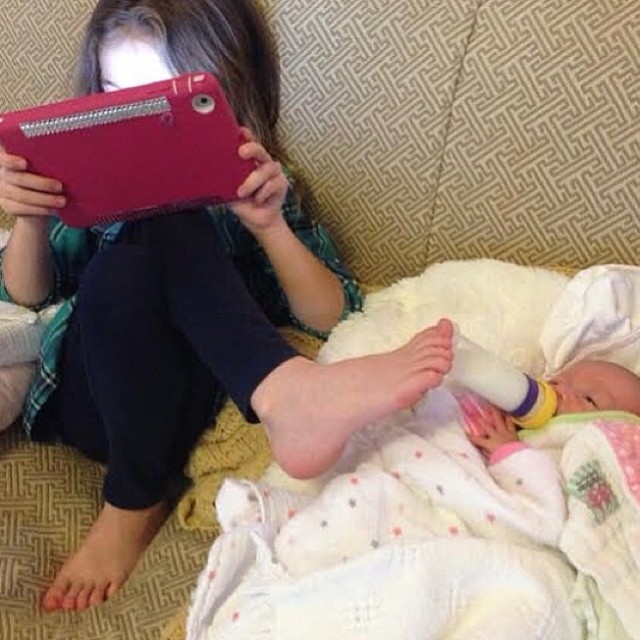 Fetiţa stătea în pat, se juca pe tabletă şi în acelaşi timp îi dădea fratelui ei să bea lapte din biberon, însă cu piciorul. Toată lumea a rămas cu gura căscată când a văzut asta. Deşi nu este tocmai igienic ceea ce face ea, fata a strâns sute de like-uri pe conturile de socializare.