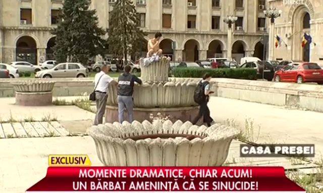Incidentul s-a petrecut în jurul orelor 16:00. Bărbatul, la bustul gol şi-a pus un cuţit la gât ameninţând că-şi va pune capăt zilelor dacă nu i se rezolvă problemele grave cu care se confruntă. Omul era nemulţumit că nu are un acoperiş deasupra capului.