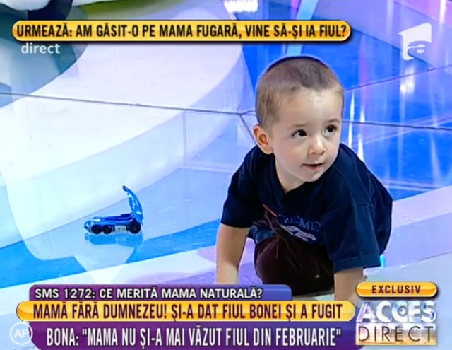 "Acces Direct" prezintă, începând cu ora 17.00, mai multe înregistrări cu Ana, individa care şi-a abandonat copilul apelând la o manevră incredibilă: a dat anunţ la mica publicitate în care susţinea că doreşte să angajeze o bonă, pentru o scurtă perioadă, iar după ce a scăpat de "povară", a dispărut fără urmă. L-a lăsat pe Sevi, băieţelul ei, luni la rând în grija bonei, iar ieri, fiind invitată la emisiunea "Acces Direct", Ana a susţinut că regretă tot ce a făcut. Însă mai multe înregistrări demonstrează că realitatea este cu totul alta! Mai mult, femeia s-a arătat dispusă să ia copilul de la bona la care l-a abandonat şi să îl... VÂNDĂ unui bărbat pe care abia îl cunoscuse!
