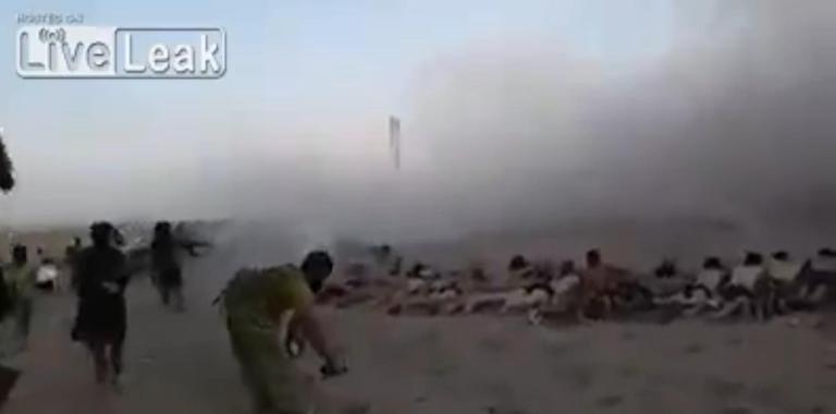Ulterior, au apărut şi imagini în care era prezentată executarea a zeci de bărbaţi îmbrăcaţi în civil, în mijlocul deşertului.