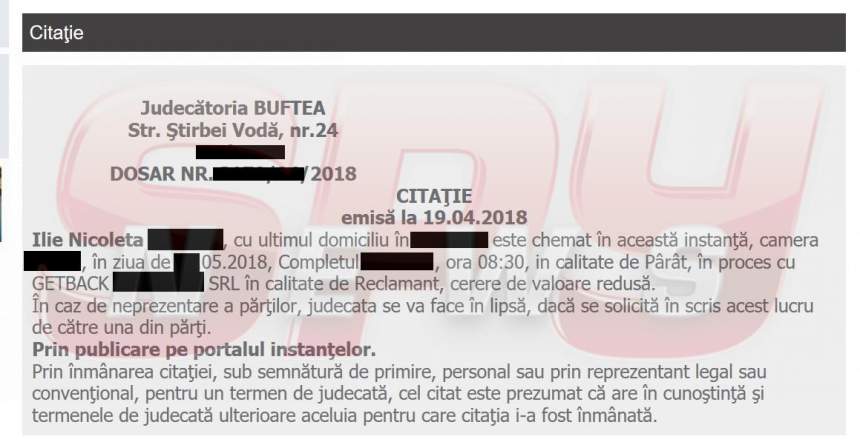 Leta Ilie a fost somată, public, pentru a se prezenta în faţa judecătorilor, după ce două societăţi comerciale au acuzat-o că nu au fost plătite pentru serviciile prestate. Pentru că Leta Ilie nu a dat curs invitaţiilor lansate de magistraţi, Leta Ilie a fost citată pe portalul instanţelor, unde se menţionează faptul că ultimul domiciliu cunoscut de autorităţi este într-o localitate din nordul Capitalei.