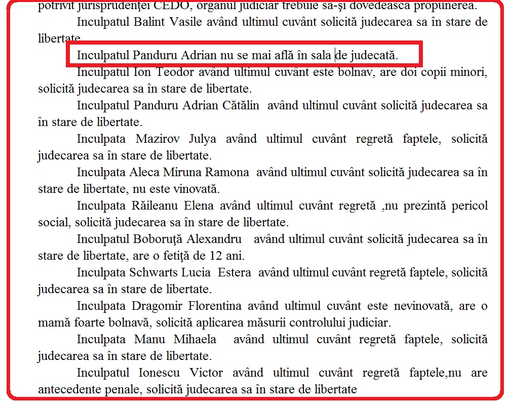 Potrivit surselor noastre, "Limbă" a fost căutat la toate adresele cunoscute, iar după mai multe discuţii ale poliţiştilor cu familia şi apărătorii acestuia, Adrian Panduru s-a predat în jurul orelor 22:00 la arestul Poliţiei Capitalei. Argumentul forte al oamenilor legii ar fi fost introducerea acestuia pe lista urmăriţiilor internaţional, lucru care poate duce la mărirea pedepsei pe care bărbatul ar primi-o în cazul unei condamnări.