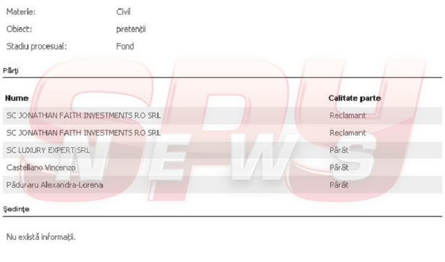 Este probabil unul dintre motivele pentru care, Vicenzo şi asociatul său au fost chemaţi în faţa judecătorilor de către o societate comercială din Bucureşti. Dosarul a fost înregistrat la secţia civilă a Judecătoriei Buftea. Un prim termen de judecată nu a fost încă stabilit.