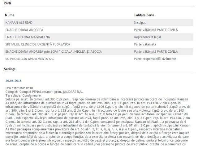 Sentinţa dată în procesul în care este acuzat de tentativă de viol nu l-a mulţumit pe bărbatul care a atacat-o pe fata lui Adrian Enache şi a făcut apel la decizia magistraţilor Judecătoriei Sectorului 1. Atât el, cât şi proprietarul complexului de apartamente Phoenicia, încearcă să scape de plata despăgubirilor, în valoare de 50.000 de euro, pentru rănile provocate Dianei Enache. Până acum, instanţa nu a stabilit un termen de judecată, însă, mai mult ca sigur, procesul va avea loc în toamnă, după vacanţa judecătorească.