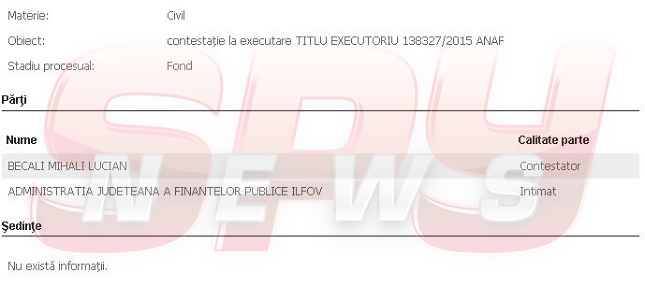 Reprezentanţii ANAF au demarat executarea silită a lui Lucian Becali, nepotul şi mâna dreptă a lui Gigi Becali. Potrivit informaţiilor obţinute de reporterii spynews.ro, Agenţia a emis deja pe numele acestuia titlul executoriu cu numărul 138327/2015. În plus, autorităţile au demarat procedura de executare silită şi a societăţii Nova Distribution Company, unul dintre creditori Avicolei Iaşi, al cărei acţionar este acelaşi Lucian Becali. Societatea figurează cu restanţe de 8.510 lei.