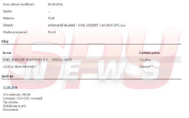 Unitatea de învăţământ, locul unor adevărate parade ale modei ce au făcut deliciul publicaţiilor tabloide, pare în imposibilitatea de a-şi achita la timp chiar şi banala factura la curent. Dovada stă procesul deschis la Judecătoria Sectorului 1 de compania ce se ocupă de distribuţia energiei.