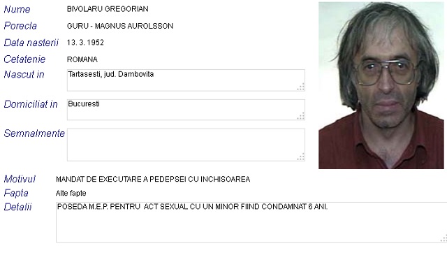 De la condamnarea sa definitivă, în 2013, Poliţia Română îl "CAUTĂ" pe maestrul din Tărtăşeşti sub numele de Gregorian Bivolaru. Fără a ţine cont de faptul că uroterapeutul - fugit din ţară din 2006 - şi-ar fi schimbat deja identitatea, în Magnus Aurolsson.