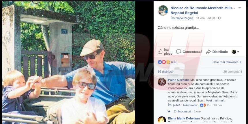 "Împărtășania înseamnă iertarea tuturor păcatelor, iertarea a tot și a toate, împăcarea cu tot și cu toate! Cum să-i refuzi aceste taine Regelui Mihai?!", a fost mesajul distribuit de fostul principe. Acesta este un fragment din postarea unei jurnaliste care a atacat dur Casa Regală. Totodată, acesta a postat o imagine în care, copil fiind, se juca alături de bunicul lui, cu următorul mesaj: "Când nu existau granițe..."