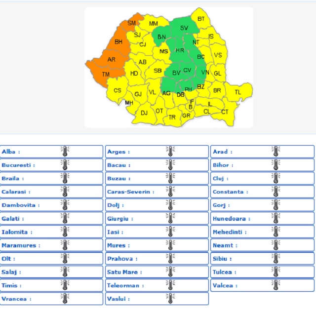 În după-amiaza zilei de marţi, 7 iulie, în judeţele Timiş, Arad, Bihor şi Satu Mare vor fi temperaturi maxime de 38...39 de grade, iar disconfortul termic va fi deosebit de accentuat.