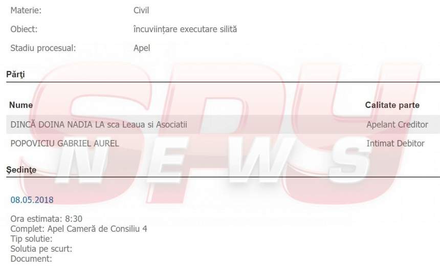 Doina, femeia care i-a fost alături mai bine de trei decenii controversatului milionar Gabriel Popoviciu, alias Puiu Popoviciu, a deschis zilele trecute un proces în care a solicitat executarea silită a bărbatului care se ascunde de Poliţia Română. Şi, ţinând cont de faptul că bărbatul nu se va putea apăra, fiind "pe goană", Doina Dincă are toate şansele să îl lase pe milionar fără o bună bucată din avere.