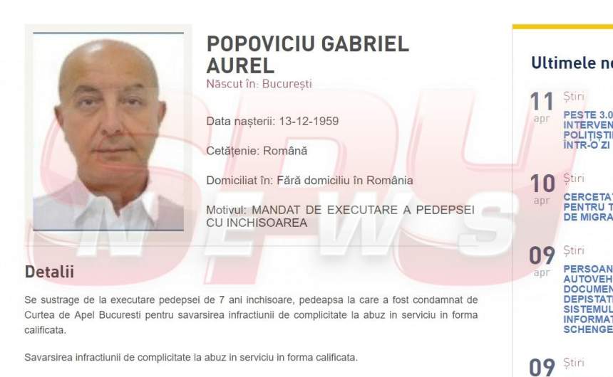 Puiu Popoviciu a fost condamnat definitiv, în 2 august, la șapte ani de închisoare pentru complicitate la abuz în serviciu și dare de mită în dosarul Ferma Băneasa, vizând fapte legate de tranzacționarea la un preț subevaluat a unui teren de 224 de hectare de la Universitatea de Științe Agronomice și Medicină Veterinară (USAMV) București, prin care s-au produs prejudicii de peste 335 de milioane de lei statului și aproape 620 de milioane de lei USAMV, potrivit profit.ro. Întrucât nu s-a prezentat la Poliție și nici nu a fost găsit de anchetatori pentru executarea pedepsei, Popoviciu a fost dat în urmărire internațională, figurând chiar şi ieri pe lista celor mai căutaţi infractori.