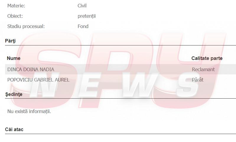 Recent, Doina-Nadia Dincă, fosta nevastă a milionarului, a deschis mai multe procese împotriva acestuia, solicitând ca judecătorii să îi recunoască oficial mai multe drepturi şi să îl oblige să plătească şi unele despăgubiri. Întrucât este reţinut la Londra, unde se află sub control judiciar, după ce a plătit o cauţiune de 200.000 de lire sterline, este greu de crezut că Puiu Popoviciu se va putea prezenta în faţa instanţei.