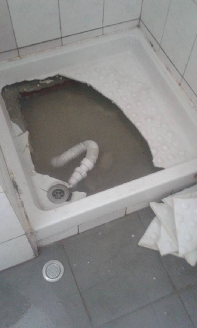 S-a împăcat cu gândul că va dormi pe jos, însă atunci când a vrut să facă un duş, Mudava a avut parte de o nouă surpriză: cădiţa cabinei de duş a cedat şi s-a făcut ţăndări.