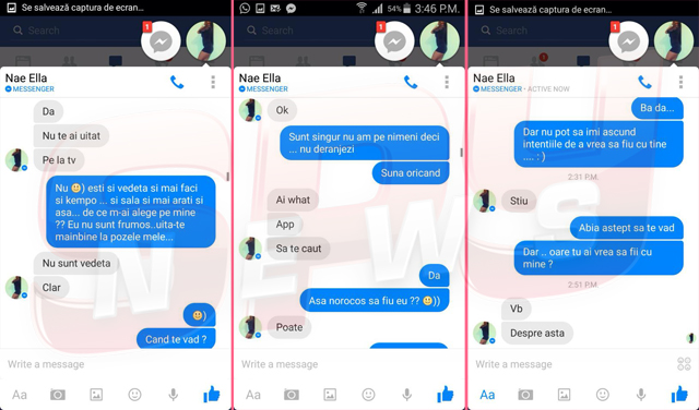 De la un flirt nevinovat până la o întâlnire amoroasă nu este decât un pas. Lucian, un romantic incurabil, şi-a încercat norocul, fascinat fiind de formele Elei. Puţin mai timidă, soţia lui Mărculescu îi răspundea scurt şi la obiect, probabil să nu fie prinsă de iubitul cu care declara că locuieşte. "Nu pot să îmi mai ascund intenţiile. Aş vrea să fiu cu tine. Oare tu ai vrea să fii cu mine?", a întrebat-o, direct, membrul trupei Elgi. Răspunsul Elei nu a întârziat să apară: "Vorbim despre asta".