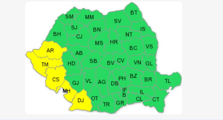 În intervalul menţionat, în judeţele Arad, Timiş, Caraş-Severin, Mehedinţi şi Dolj vor fi averse, care vor avea şi caracter torenţial. Cantităţile de apă vor depăşi local 20...25 l/mp şi izolat 40...50 l/mp.