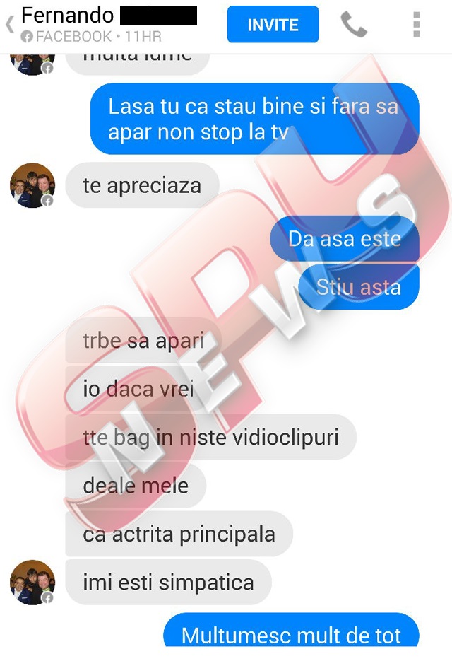 "Curtarea" a continuat mult timp, semn că Fernando are gânduri serioase cu fosta concurentă. Mai mult decât, pentru a demonstra că nu este vreun fan pus pe glume şi este chiar ”vedeta” Fernando de la Caransebeş, tânărul i-a oferit disponibilitatea lui: "Mai vorbim când avem timp şi îţi dau webcam. Să vezi că sunt eu".