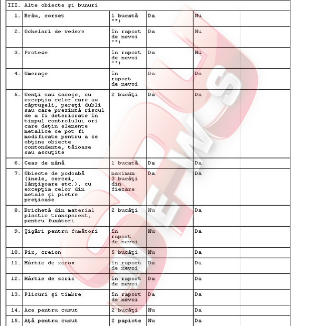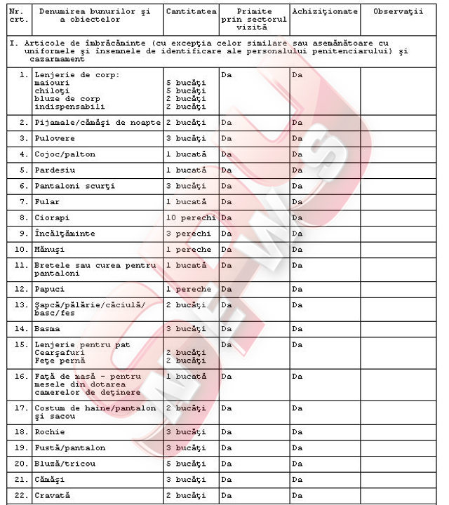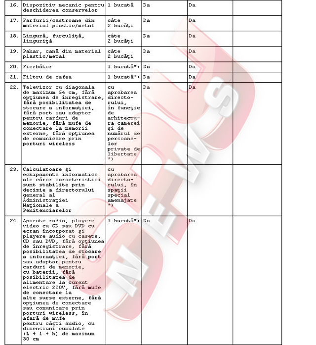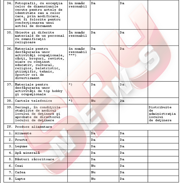 La acestea se adaugă câteva zeci de bunuri pe care omul de afaceri le poate deţine în penitenciar conform normelor în vigoare.