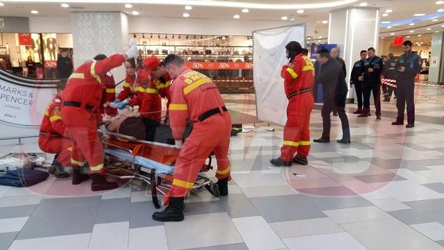 Autorităţile au sosit la faţa locului! Femeia nu s-a sinucis, ci s-a împiedicat şi a căzut în interiorul mall-ului de la înălţime, apoi a suferit un stop cardio-respirator, din cauza căruia a şi decedat.