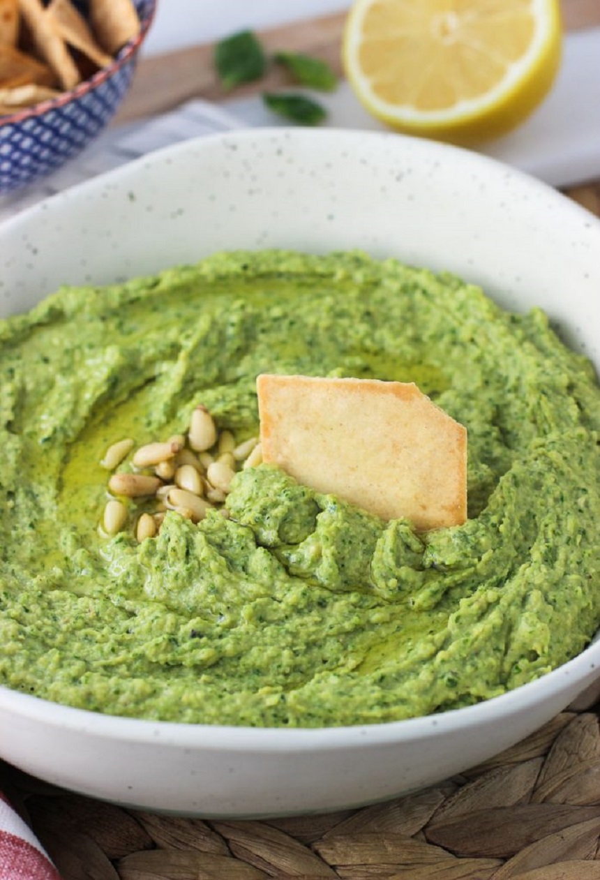 Se adaugă frunzele de varză şi cele de busuioc împreună cu usturoiul în vasul unui procesor de alimente şi se mixează până acestea se mărunţesc complet. Se adaugă 1/4 ceşcă de ulei de măsline şi se amestecă până ce acesta se integrează complet. Compoziţia obţinută se scoate într-un bol. Se adaugă restul ingredientelor în vasul procesorului şi se mixează până ce se obţine o compoziţie omogenă. După ce toate ingredientele s-au combinat perfect se adaugă amestecul de varză şi busuioc şi se mixează până ce acestea se combină perfect. Se serveşte imediat.