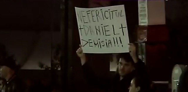 În imagini puteţi vedea mulţimea care s-a adunat în Bucureşti. Pe una dintre pancartele oamenilor scrie: "Nefericitul Daniel Demisia". Mesajul a stârnit amuzamentul invitaţilor din platoul "Acces Direct".