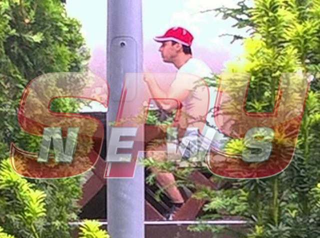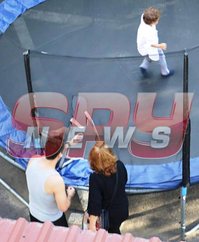 În mai multe fotografii, Mircea Badea apare supraveghindu-şi fiul care ţopăia de zor pe o trambulină. De teamă ca băieţelul să nu se lovească, Mircea Badea i-a scurtat micuţului distracţia, rugându-l să coboare.