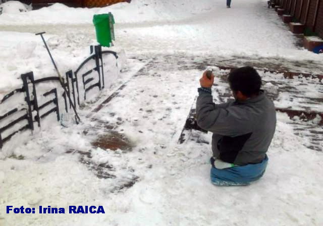 Deszăpezirea e o activitate cu care iarna "vine la pachet". Cu toate că persoana din fotografie pare normală, realitatea e cu totul alta.