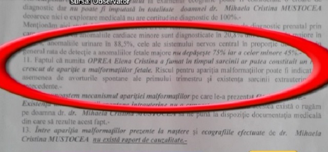 Medicii din Petroşani care s-au ocupat de acest caz au eliberat o expertiză medicală, conform căreia, mama ar fi singura vinovată de handicapul copilului, din cauza faptului că ar fi fumat în timpul sarcinii.
