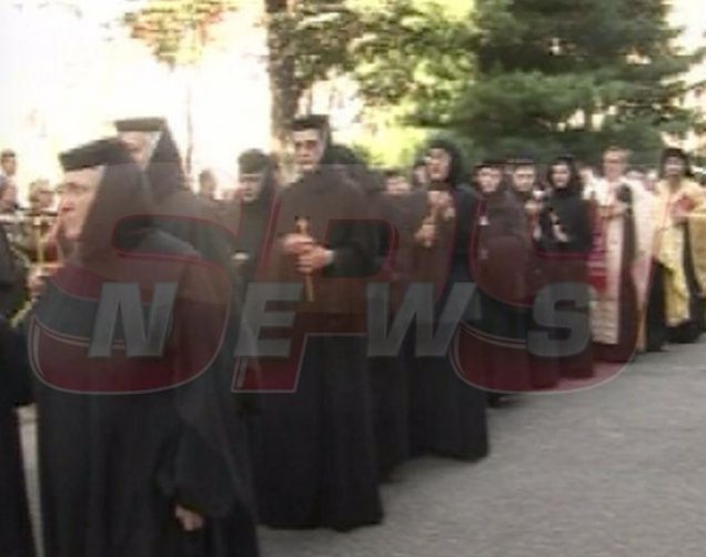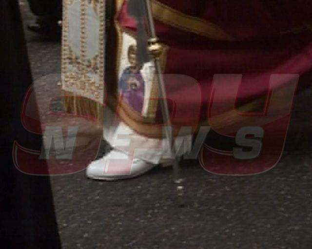 Cea mai importantă figură a Bisericii Ortodoxe Române a atras toată atenţia celor din jur cu veşmintele sale impecabile, dar mai ales, datorită încălţămintei sale. Înalt Prea Sfinţitul Daniel a condus alaiul de oameni, spre groapă, încălţat cu o pereche de pantofi albi, imaculaţi, lipsiţi de orice fel de cusur, aproape demni de o figură regală şi nicidecum de una monahală.